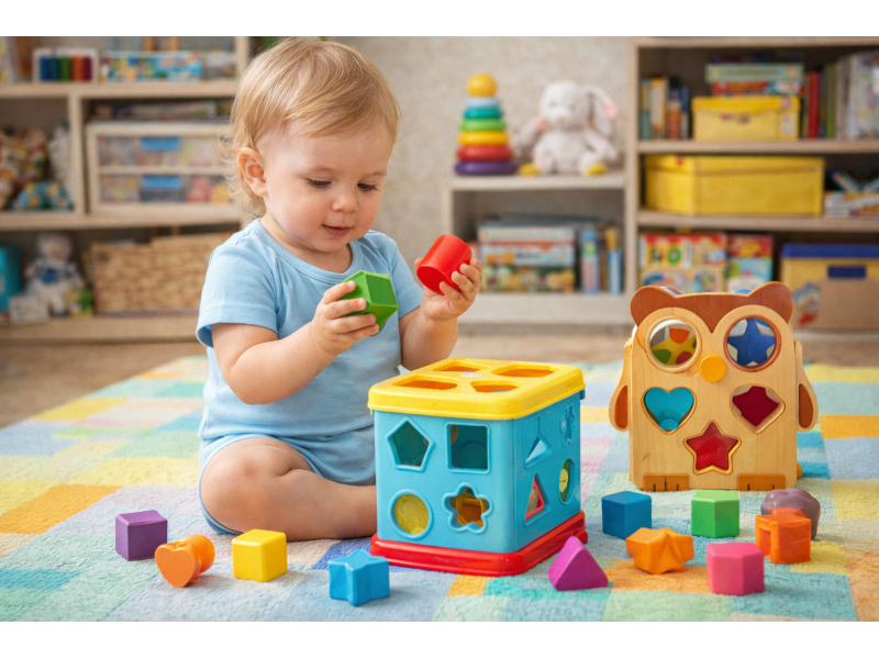 Подходящие сортеры.- Пластиковые. Сортировочные игрушки с разнообразными формами и цветами. Желательно выбирать сортеры с музыкальными или световыми эффектами, которые дополнительно стимулируют интерес ребенка.